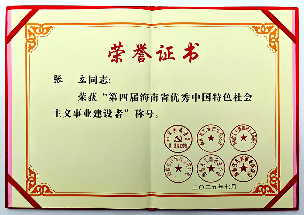 2025年7月17日下午,由中共海南省委统一战线工作部、海南省工业和信息化厅、海南省人力资源和社会保障厅、海南省市场监督管理局、海南省工商业联合会、海南省光彩事业促进会联合开展的第四届海南省非公有制经济人士优秀中国特色社会主义事业建设者暨光彩事业贡献奖表彰大会在海南省人大会堂隆重举行。三亚百泰生物科技有限公司董事长张立荣膺“第四届海南省优秀中国特色社会主义事业建设者”称号。